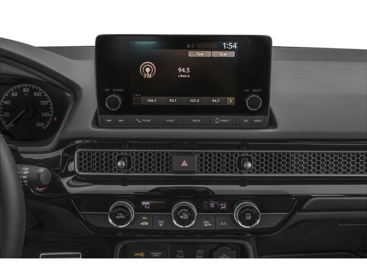 - Radio: 180-Watt Audio System -inc: 8 speakers, 7" color touchscreen, Bluetooth® HandsFreeLink and streaming audio, Speed-Sensitive Volume Compensation (SVC), Radio Data System (RDS), HondaLink, Apple CarPlay and Android Auto compatibilities and 3.0-amp USB-C smartphone/audio interfaces in front seats
