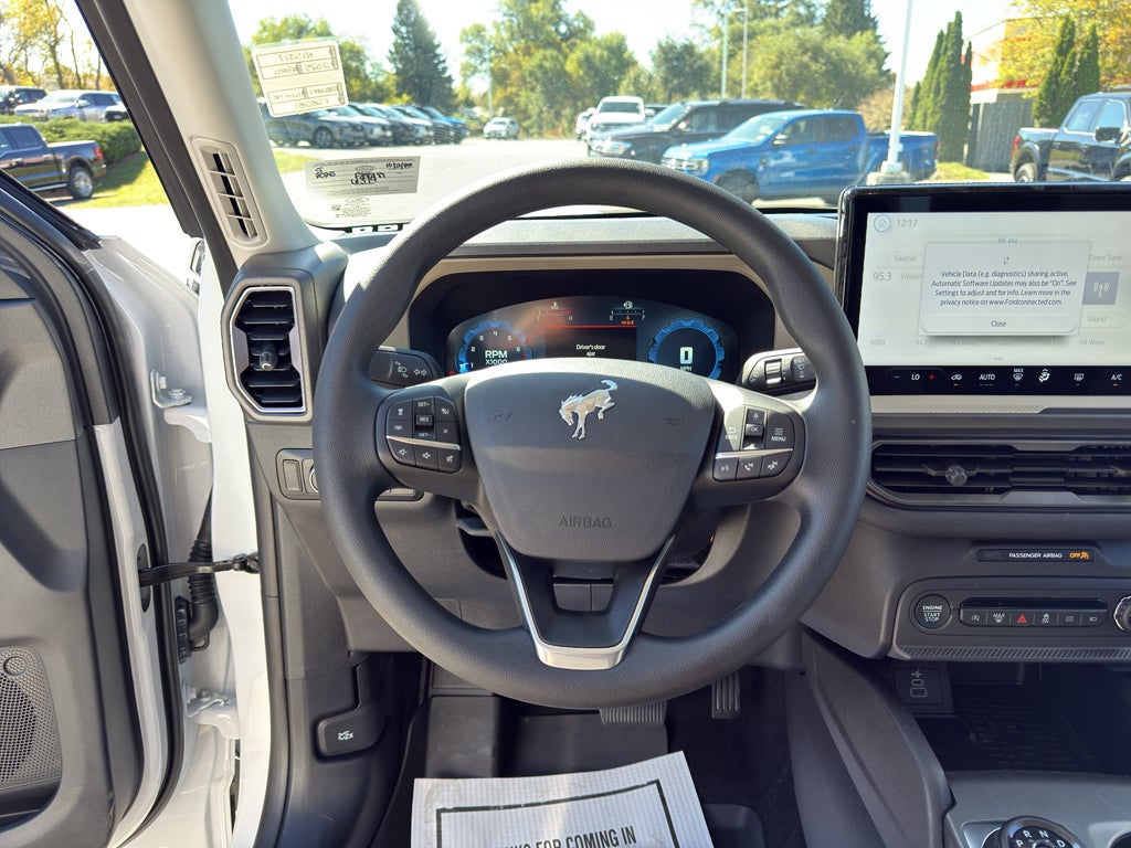 The rear parking assist technology on this Ford Bronco Sport will put you at ease when reversing. The system alerts you as you get closer to an obstruction. The Ford Bronco Sport offers Apple CarPlay for seamless connectivity. See what's behind you with the back up camera on the vehicle. This Ford Bronco Sport features a hands-free Bluetooth® phone system. This unit has auto-adjust speed for safe following. Start this unit from inside with remote start. This 2025 Ford Bronco Sport keeps you comfortable with Auto Climate. The vehicle comes equipped with Android Auto for seamless smartphone integration on the road. This model has a 3 Cyl, 1.5L high output engine. When you encounter slick or muddy roads, you can engage the four wheel drive on the Ford Bronco Sport and drive with confidence. Set the temperature exactly where you are most comfortable in this vehicle. The fan speed and temperature will automatically adjust to maintain your preferred zone climate.