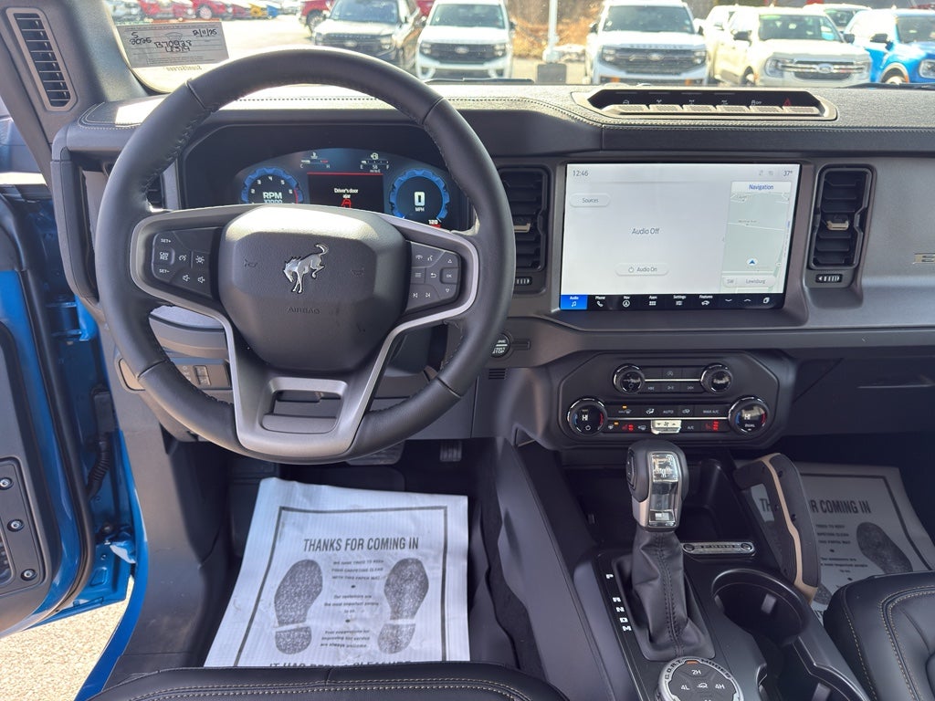 This vehicle offers Apple CarPlay for seamless connectivity. This vehicle's Cross-Traffic Alert: Safeguarding you from unexpected traffic when reversing. Protect this 1/2 ton suv from unwanted accidents with a cutting edge backup camera system. Keep your hands warm all winter with a heated steering wheel in this model . The leather seats in this vehicle are a must for buyers looking for comfort, durability, and style. The rear parking assist technology on this unit will put you at ease when reversing. The system alerts you as you get closer to an obstruction. An off-road package is equipped on this 2025 Ford Bronco . Heated seats for those cold winter days are included in this vehicle. You'll never again be lost in a crowded city or a country region with the navigation system on this model. Bluetooth® technology is built into this vehicle, keeping your hands on the steering wheel and your focus on the road.