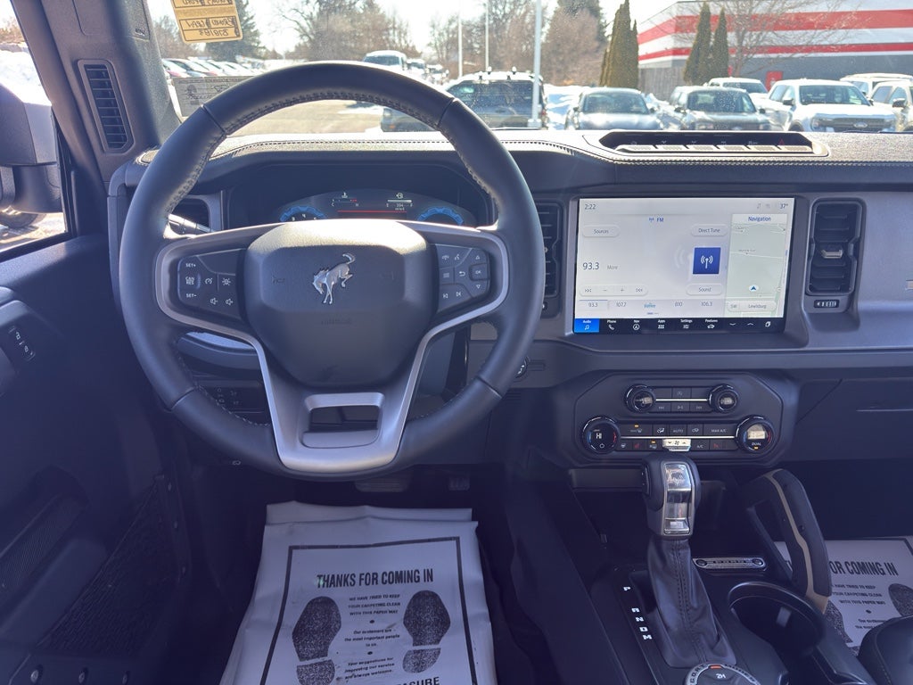 An off-road package is equipped on this model. The Ford Bronco comes equipped with Android Auto for seamless smartphone integration on the road. The vehicle is pure luxury with a heated steering wheel. The state of the art park assist system will guide you easily into any spot. Heated seats for those cold winter days are included in this unit. Protect this Ford Bronco from unwanted accidents with a cutting edge backup camera system. Apple CarPlay: Seamless smartphone integration for the vehicle - stay connected and entertained on the go! You'll never again be lost in a crowded city or a country region with the navigation system on it. The leather seats in the vehicle are a must for buyers looking for comfort, durability, and style. Bluetooth® technology is built into this unit, keeping your hands on the steering wheel and your focus on the road. This unit's Cross-Traffic Alert: Safeguarding you from unexpected traffic when reversing.