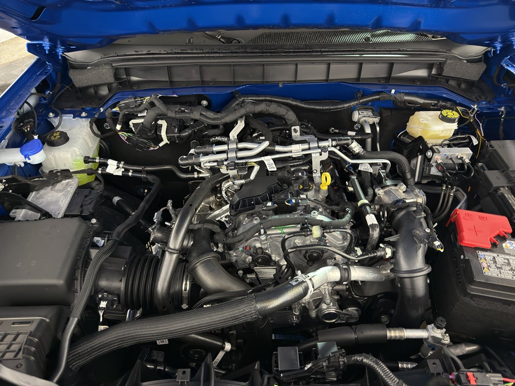 Equipment Group 222A Mid Package: 17" Carbonized Gray-Painted Aluminum Wheel; Rear Parking Sensors; Power Outlet - Back Side of Center Floor Console; Dual Smart Charging USB Ports; 2.3L EcoBoost I-4 Engine; Front Row Heated Seats; Driver and Front Passenger Illuminated Sliding Visor Vanity Mirrors; AM/FM Stereo; Dual-Zone Electronic Automatic Temperature Control; Connected Navigation; P255/75R17 A/T Tires; Ambient Footwell Lighting; Remote Start System; 2-Door Intelligent Access with Lock/unlock. Ford Co-Pilot360: Auto High-Beam Headlamps; Rear View Camera; Pre-Collision Assist with Automatic Emergency Braking; Blind Spot Information System (BLIS); Lane-Keeping System. Black Diamond Package: Rock Rails; Washout Capable Rubberized Flooring; Powder Coated Steel Front and Rear Bumpers; Full Vehicle Steel Bash Plates; Auxiliary Switches; LED Fog Lamps. Carbonized Gray Molded-In-color Hard Top. Marine Grade Vinyl Bucket Seats. Hard Top Sound Deadening Headliner. Velocity Blue Metallic. **Equipment listed is based on original vehicle build and subject to change. Please confirm the accuracy of the included equipment by calling the dealer prior to purchase.**