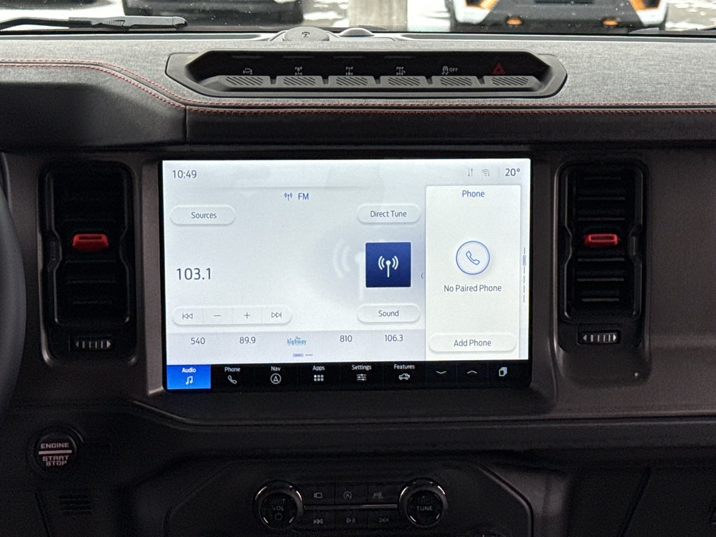 This 2025 Ford Bronco has auto-adjust speed for safe following. This 1/2 ton suv offers Apple CarPlay for seamless connectivity. This 1/2 ton suv warns of approaching vehicles with Cross-Traffic Alert. Bluetooth® technology is built into this unit, keeping your hands on the steering wheel and your focus on the road. This 2025 Ford Bronco comes equipped with Android Auto for seamless smartphone integration on the road. The leather seats in this model are a must for buyers looking for comfort, durability, and style. See what's behind you with the back up camera on this Ford Bronco. You'll never again be lost in a crowded city or a country region with the navigation system on this model. Start this vehicle from inside with remote start. This unit is pure luxury with a heated steering wheel. An off-road package is installed on the vehicle so you are ready for your four-wheeling best.