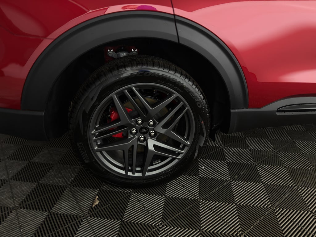 Premium Package: 110V/150W AC Power Outlet; Auto-Dimming Interior Rearview Mirror; Memory Driver's Seat; Manual-Folding Sideview Mirrors; Rain-Sensing Wipers (front Only); Ambient Lighting; 2nd Row Heated Seats. Equipment Group 300A Standard Package: 20" Ebony-Painted Machined Aluminum Wheels; 10-Speed Automatic Transmission; Heated Unique Cloth Captain's Chairs; 2.3L EcoBoost I-4 Engine; P255/55R20 AS BSW Tires; B&O Sound System by Bang and Olufsen. ST-Line Street Pack: Performance Brakes; Red Painted Performance Front and Rear Brake Calipers. Panoramic Fixed Glass Roof with Power Shade. Ford Connectivity Package (one-Time Purchase - 7 Years). BlueCruise (equipment + 1-Year + 90-Day Plan). Rapid Red Metallic TC. SecuriCode Keyless Entry Keypad. 18" Spare Wheel and Jack Kit. SiriusXM with 360L (3-Year Plan). **Equipment listed is based on original vehicle build and subject to change. Please confirm the accuracy of the included equipment by calling the dealer prior to purchase.**