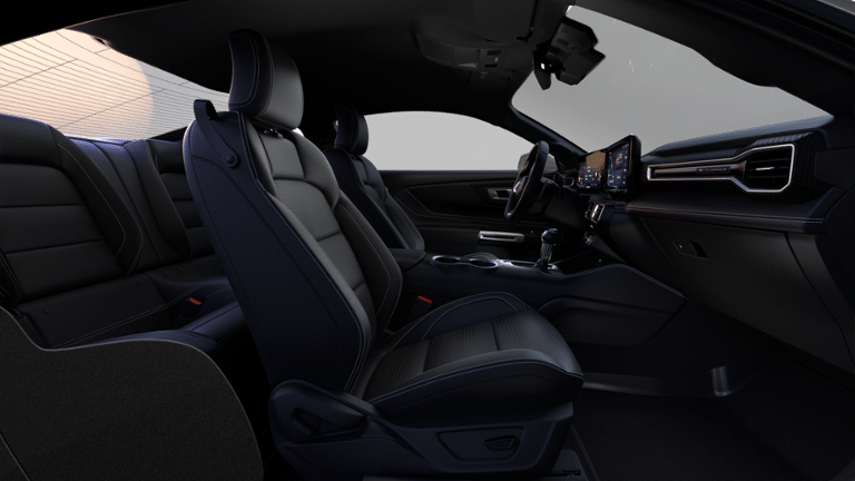 Equipment Group 401A High Package: Leather-Trimmed Bucket Seats with Color Accents; 5.0L Ti-VCT V8 Engine; Perimeter Alarm; Magnesium Framed Panoramic Curved Display; AM/FM Stereo; Driver Seat Memory with 3 Settings; Aluminum Foot Pedals. Premier Trim with Color Accent Group: Instrument Panel with Accent Stitch. Ford Co-Pilot360 Assist+: Adaptive Cruise Control with Stop and Go; One-Year Connected Navigation; Pre-Collision Assist with Automatic Emergency Braking; Lane-Keeping System with Lane Keeping Aid. 3.55 Limited Slip Rear Axle. Magnesium Framed Panoramic Curved Display. Mini Spare Wheel and Tire. Wedge Decklid Spoiler. Premium Floor Liners Front and Rear (with Carpet Mats). Floor Mats. 1st Row. Black with City Silver GT Logo. **Equipment listed is based on original vehicle build and subject to change. Please confirm the accuracy of the included equipment by calling the dealer prior to purchase.**