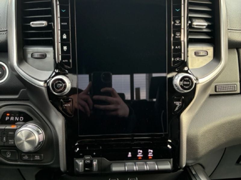 Never get into a cold vehicle again with the remote start feature on this vehicle. Bluetooth® technology is built into the vehicle, keeping your hands on the steering wheel and your focus on the road. Apple CarPlay: Seamless smartphone integration for this model - stay connected and entertained on the go! This Ram 1500's Forward Collision Warning feature alerts drivers to potential front-end collisions. The installed navigation system will keep you on the right path. Protect the vehicle from unwanted accidents with a cutting edge backup camera system. An off-road package is equipped on this 1/2 ton pickup. This vehicle offers Android Auto for seamless smartphone integration. Keep your hands warm all winter with a heated steering wheel in this unit . The vehicle has automated speed control that adjusts to maintain a safe following distance, enhancing highway driving convenience. The leather seats in this 1/2 ton pickup are a must for buyers looking for comfort, durability, and style.