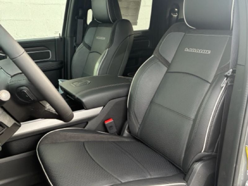 Quick Order Package 24H Laramie. Night Edition: Firestone Brand Tires; LT285/60R20E OWL On/off Road Tires; Black Exterior Truck Badging; 20" X 8" Black Painted Aluminum Wheels; Gloss Black Grille Billets/accents; Body Color Grille Surround; Sport Performance Hood; Black Wheel Center Hub. Laramie Level 1 Plus Equipment Group: Center Stop Lamp with Cargo View Camera; Rain Sensitive Windshield Wipers; Power Adjustable Pedals with Memory; LED Bed Lighting; Traffic Sign Recognition; Auto Power-Folding Mirrors; Adaptive Steering System; Exterior Mirrors with Heating Element; Auto Dim Exterior Mirror; Anti-Spin Differential Rear Axle; Drowsy Driver Detection; Mirror Running Lights; MOPAR Deployable Bed Step; Foam Bottle Insert (door Trim Panel); Black Exterior Mirrors; Power Adjustable Convex Aux Mirrors; Active Lane Management System; Forward and Reverse Utility Lights; Leather Trimmed Bucket Seats; Power Heated Fold Telescope Mirrors W/memory; Exterior Mirrors with Supplemental Signals; Exterior Mirrors Courtesy Lamps; MOPAR Spray in Bedliner; Remote Tailgate Release; Auto High Beam Headlamp Control; Exterior Mirrors with Memory; Power Adjust Mirrors; Power Telescoping Mirrors; Auto Dim Exterior Passenger Mirror; Auto Adjust in Reverse Exterior Mirrors. Power Sunroof. Painted Flat Wheel-To-wheel Side Steps. Leather Trimmed Bucket Seats. Center Stop Lamp with Cargo View Camera. MyFlexCare Service Diesel. Clearance Lamps. **Equipment listed is based on original vehicle build and subject to change. Please confirm the accuracy of the included equipment by calling the dealer prior to purchase.**