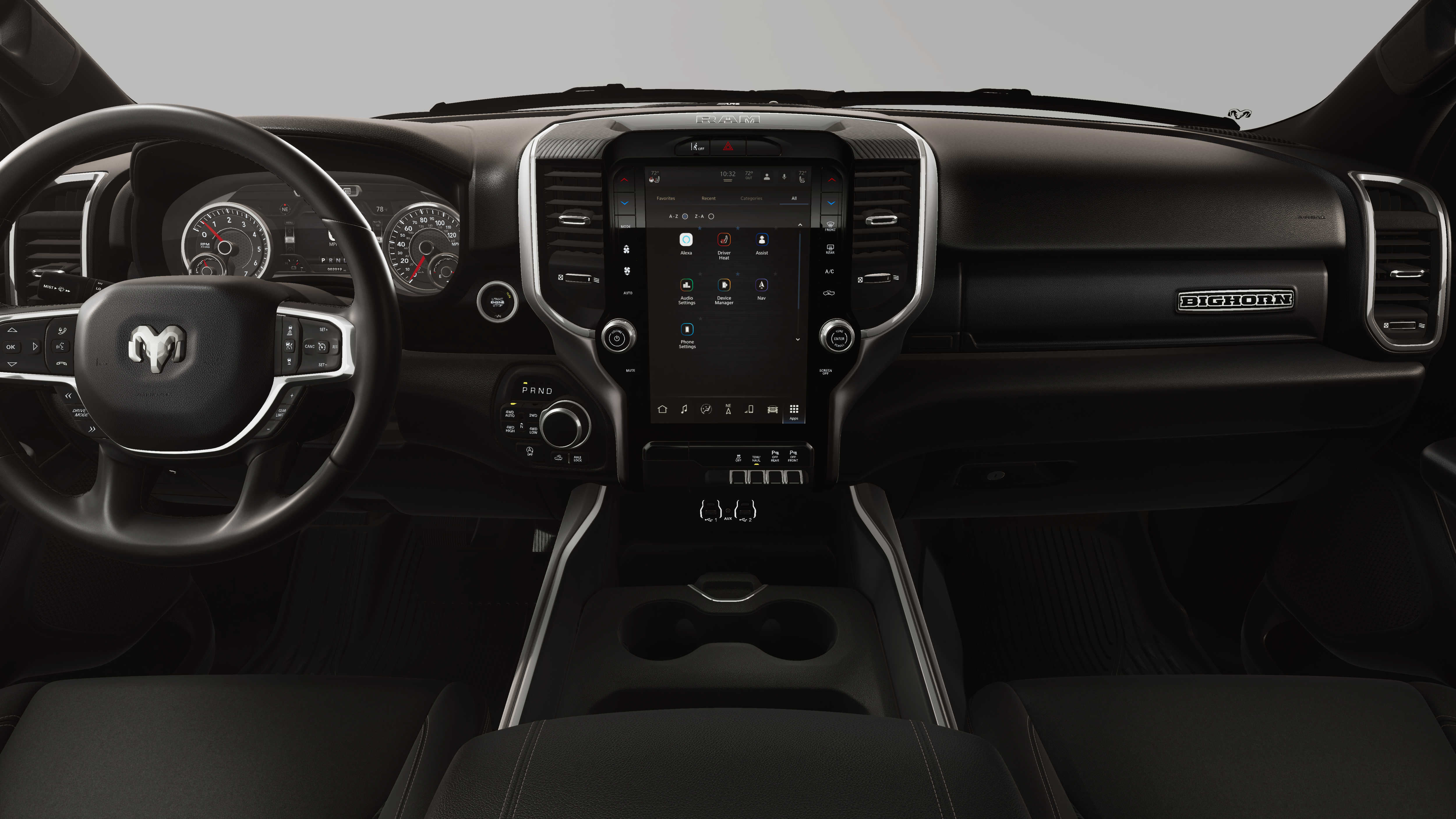 Quick Order Package 27Z Big Horn. Big Horn Level 2 Equipment Group: Google Android Auto; SiriusXM Radio Service; USB Host Flip; Power Adjustable Pedals; Leather Wrapped Steering Wheel; Integrated Voice Command with Bluetooth®; 12" Touchscreen Display; Glove Box Lamp; Auto Power-Folding Mirrors; 115V Auxiliary Rear Power Outlet; Media Hub with 2 Charge Only USBs; Heated Front Seats; Security Alarm; Black Premium Power Mirrors; Apple CarPlay; Premium Overhead Console; 9 Amplified Speakers with Subwoofer; Disassociated Touchscreen Display; Body Color Fender Flares; Remote Tailgate Release; 115V Auxiliary Power Outlet; LED Dome Lamp with On/off Switch; Universal Garage Door Opener; 2nd Row in Floor Storage Bins; Sun Visors with Illuminated Vanity Mirrors; LED Footwell Lighting; Rear Window Defroster; Integrated Center Stack Radio; Rear View Auto Dim Mirror; Rear Power Sliding Window; Connectivity - US/Canada; GPS Navigation; 4G LTE Wi-Fi Hot Spot; GPS Antenna Input; Overhead LED Lamps; Exterior Mirrors with Heating Element; Auto Dim Exterior Driver Mirror; SiriusXM with 360L; Global Telematics Box Module; Connected Travel and Traffic Services; Heated Steering Wheel; Black Exterior Mirrors; Configurable Drive Mode; Off-Road Information Pages; 400W Inverter; HD Radio; Deluxe Cloth Bucket Seats; Uconnect 5 Navigation with 12.0" Display Radio; Exterior Mirrors with Supplemental Signals; Steering Wheel Mounted Audio Controls; Exterior Mirrors Courtesy Lamps; Air Conditioning ATC with Dual Zone Control; Cluster 7.0" TFT Color Display; Convex Wide-Angle Exterior Mirror Insert. Off Road Group: Off Road Decals; Steering Gear Skid Plate; Falken Brand Tires; 275/55R20 BSW All-Terrain Tires; Raised Ride Height; Front Extra Heavy Duty Shock Absorbers; Rear Extra Heavy Duty Shock Absorbers; Full Size Spare Tire; Tow Hooks; E-Locker Rear Axle; Transfer Case Skid Plate; Fuel Tank Skid Plate; Selec-Speed Control. Sport Appearance Package. Quick Order Package 23Z Big Horn. 20" X 9" Aluminum Chrome Clad Wheels. RamBox Cargo Management System. 9 Amplified Speakers with Subwoofer. E-Locker Rear Axle. Forged Blue Metallic. MOPAR Front and Rear Rubber Floor Mats. 3.92 Rear Axle Ratio. **Equipment listed is based on original vehicle build and subject to change. Please confirm the accuracy of the included equipment by calling the dealer prior to purchase.**
