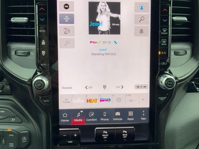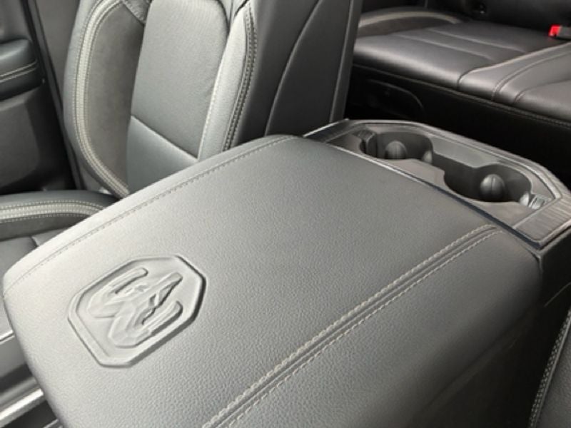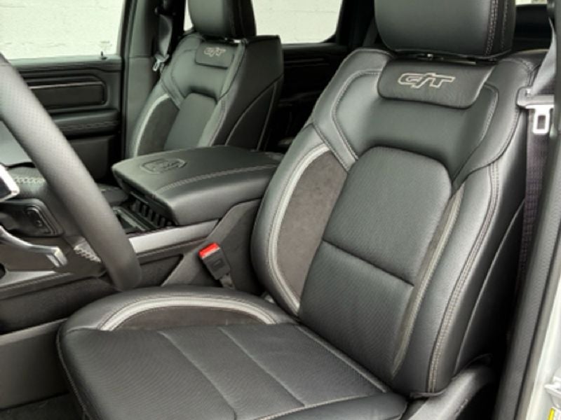 G/T Package: Floor Console; Under Seat Lighting; Leather/vinyl Bucket Seats; G/T Decal; Leather Wrapped Shift Knob; Leather-Wrapped Steering Wheel; Steering Wheel Mounted Shift Control; G/T Exhaust; GT Interior Theme; MOPAR Bright Pedal Kit; Performance Pages. Bed Utility Group: MOPAR Spray in Bedliner; Truck Bed Cargo Divider; MOPAR Deployable Bed Step; MOPAR 4 Adjustable Cargo Tie-Down Hooks; Exterior 115V AC Outlet. Quick Order Package 21W Rebel. Rebel Level 2 Equipment Group: Google Android Auto; SiriusXM Radio Service; USB Host Flip; Rear Window Defroster; Rain Sensitive Windshield Wipers; Integrated Center Stack Radio; Power Adjustable Pedals with Memory; Front Passenger Interactive Display; Integrated Voice Command with Bluetooth®; Connectivity - US/Canada; Auto Power-Folding Mirrors; GPS Navigation; 4G LTE Wi-Fi Hot Spot; 115V Auxiliary Rear Power Outlet; GPS Antenna Input; Media Hub with 2 Charge Only USBs; Exterior Mirrors with Heating Element; Proximity Approach/departure Lamps; Auto Dim Exterior Driver Mirror; SiriusXM with 360L; Accent Color Door Handles; Global Telematics Box Module; Connected Travel and Traffic Services; Heated Second Row Seats; Power Adjust 8-Way Front Passenger Seat; Security Alarm; Apple CarPlay; Black Painted Exterior Mirrors Caps; Off-Road Information Pages; Exterior Mirrors Approach Lamps; Disassociated Touchscreen Display; HD Radio; Smartphone as a Key Capable; 14.4" Touchscreen Display; Accent Color Premium Power Mirrors; Dual Wireless Charging Pad; Exterior Mirrors with Supplemental Signals; Exterior Mirrors Courtesy Lamps; Uconnect 5 Nav with 14.4" Display; Harman/kardon 19 Speaker Premium Sound; 2-Door Passive Entry. Front Door Locks; Accent Color Tailgate Handle; Exterior Mirrors with Memory; Driver Seat Memory; Power Tailgate; Convex Wide-Angle Exterior Mirror Insert; Radio/driver Seat/mirrors/pedals Memory. Dual-Pane Panoramic Sunroof. RamBox Cargo Management System. MOPAR Black Tubular Side Steps. Trailer Brake Control. Silver Zynith. Silver Zynith. **Equipment listed is based on original vehicle build and subject to change. Please confirm the accuracy of the included equipment by calling the dealer prior to purchase.**