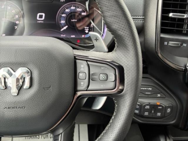 The vehicle is pure luxury with a heated steering wheel. See what's behind you with the back up camera on this model. This 2026 Ram 1500 is equipped with the latest generation of XM/Sirius Radio. This Ram 1500 comes equipped with Android Auto for seamless smartphone integration on the road. It offers Apple CarPlay for seamless connectivity. The vehicle's Forward Collision Warning system alerts the driver to potential front-end collisions, enhancing safety. The installed navigation system will keep you on the right path. The vehicle has a premium sound system installed. An off-road package is installed on this 2026 Ram 1500 so you are ready for your four-wheeling best. The vehicle has automated speed control that adjusts to maintain a safe following distance, enhancing highway driving convenience. Start the vehicle from inside with remote start. This Ram 1500 features a hands-free Bluetooth® phone system. The leather seats in this 1/2 ton pickup are a must for buyers looking for comfort, durability, and style.