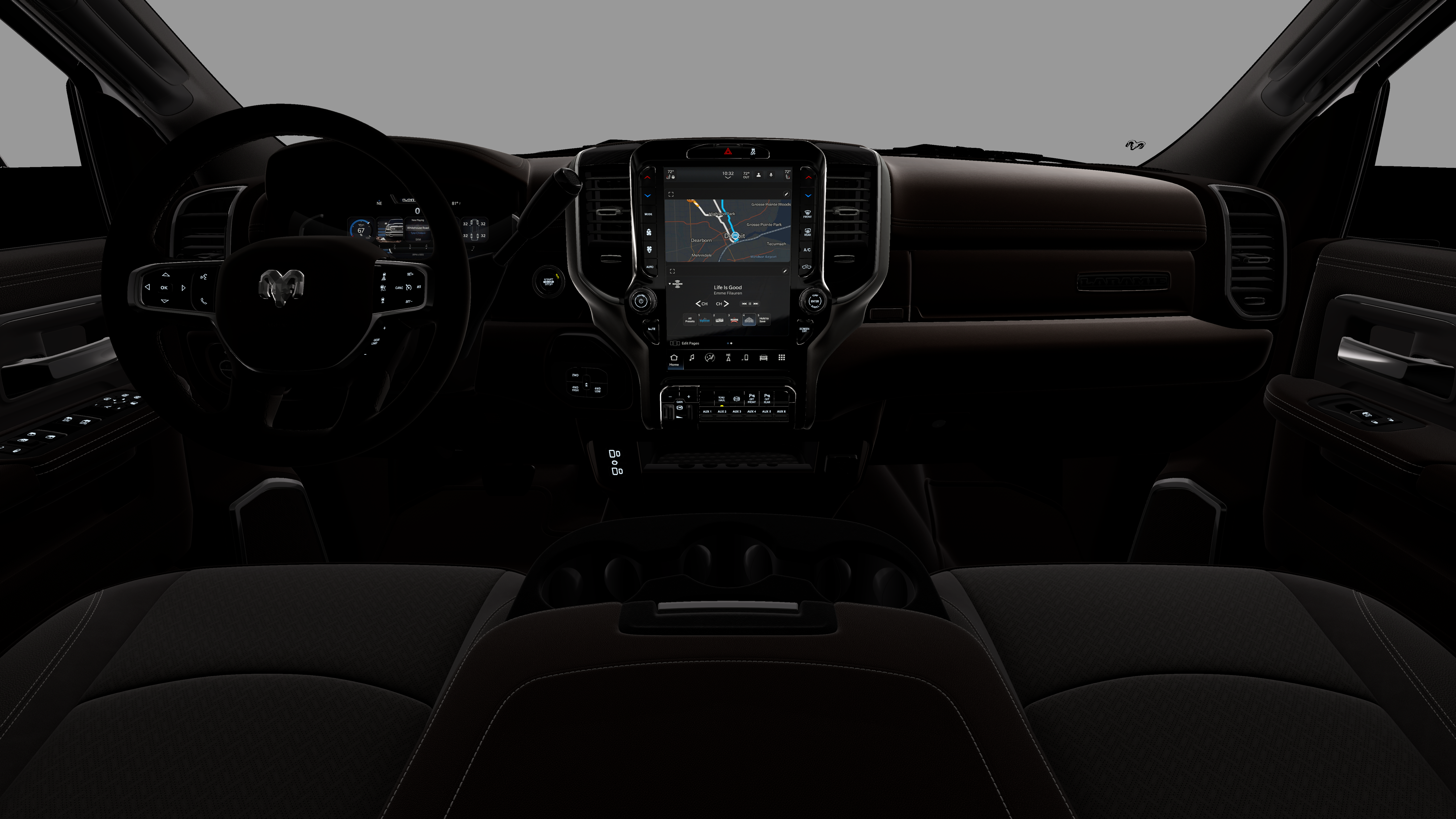 Cold Weather Group: Engine Block Heater; MOPAR Winter Front Grille Cover. Quick Order Package 24H Laramie. Laramie Level 1 Equipment Group: Forward and Reverse Utility Lights; Rain Sensitive Windshield Wipers; Power Adjustable Pedals with Memory; Power Heated Fold Telescopic Mirrors with Memory; Exterior Mirrors with Supplemental Signals; Exterior Mirrors Courtesy Lamps; Auto Power-Folding Mirrors; Remote Tailgate Release; Exterior Mirrors with Heating Element; Auto Dim Exterior Mirror; Anti-Spin Differential Rear Axle; Auto High Beam Headlamp Control; Chrome Exterior Mirrors; Exterior Mirrors with Memory; Mirror Running Lights; Foam Bottle Insert (door Trim Panel); Power Adjust Mirrors; 2nd Row in Floor Storage Bins; Power Telescoping Mirrors; Auto Dim Exterior Passenger Mirror; Auto Adjust in Reverse Exterior Mirrors; Power-Adjustable Convex Aux Mirrors. Bed Utility Group: MOPAR Spray in Bedliner; MOPAR Deployable Bed Step; LED Bed Lighting. Chrome Bumper Package: Bright Rear Bumper; Bright Front Bumper. 20" X 8.0" Polished Aluminum Wheels. Chrome Flat Wheel-To-wheel Side Steps. Leather Trimmed Bucket Seats. MyFlexCare Service Diesel. Instrument Panel Mounted Auxiliary Switches. Clearance Lamps. **Equipment listed is based on original vehicle build and subject to change. Please confirm the accuracy of the included equipment by calling the dealer prior to purchase.**