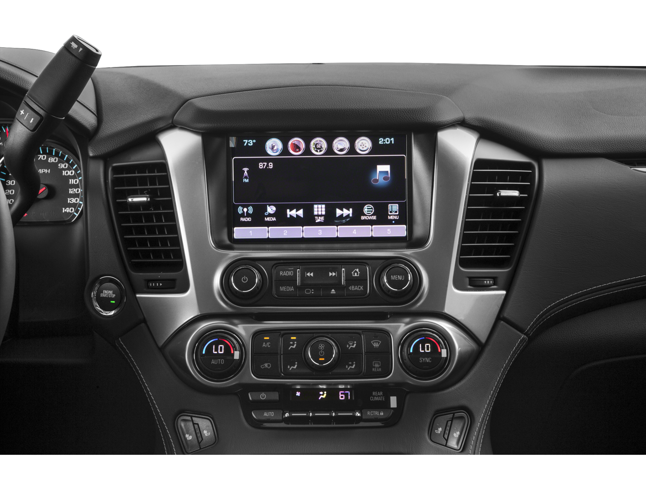 Sun. Entertainment and Destinations Package: Chevrolet MyLink Radio with Navigation/AM/FM Stereo; Rear Seat Blu-Ray/DVD Entertainment System; Power Sunroof. Luxury Package: 2nd Row Power Release 60/40 Split Folding Bench Seat; Heated 2nd Row Seats; Hands Free Power Liftgate; Heated Leather Wrapped Steering Wheel; Memory Settings; 3rd Row 60/40 Power Fold Split-Bench; Front and Rear Parking Assist; Power-Folding Heated Outside Mirrors; Side Blind Zone Alert with Lane Change Alert; Power Tilt and Telescopic Steering Column with Memory; Passive Entry System; Fog Lamps; Rear Cross-Traffic Alert; Keyless Start Switch; Wireless Charging. Max Trailering Package: 2-Speed Active Electronic Autotrac Transfer Case; Standard Suspension Package; 3.42 Rear Axle Ratio; Integrated Trailer Brake Controller. Preferred Equipment Group 1LT: Extended-Range Remote Keyless Entry; Memory Settings; 2nd Row 60/40 Split-Folding Manual Bench; Forward Collision Alert; Leather-Appointed Seat Trim; Front Heated Reclining Bucket Seats; Power Liftgate; Rear Park Ass