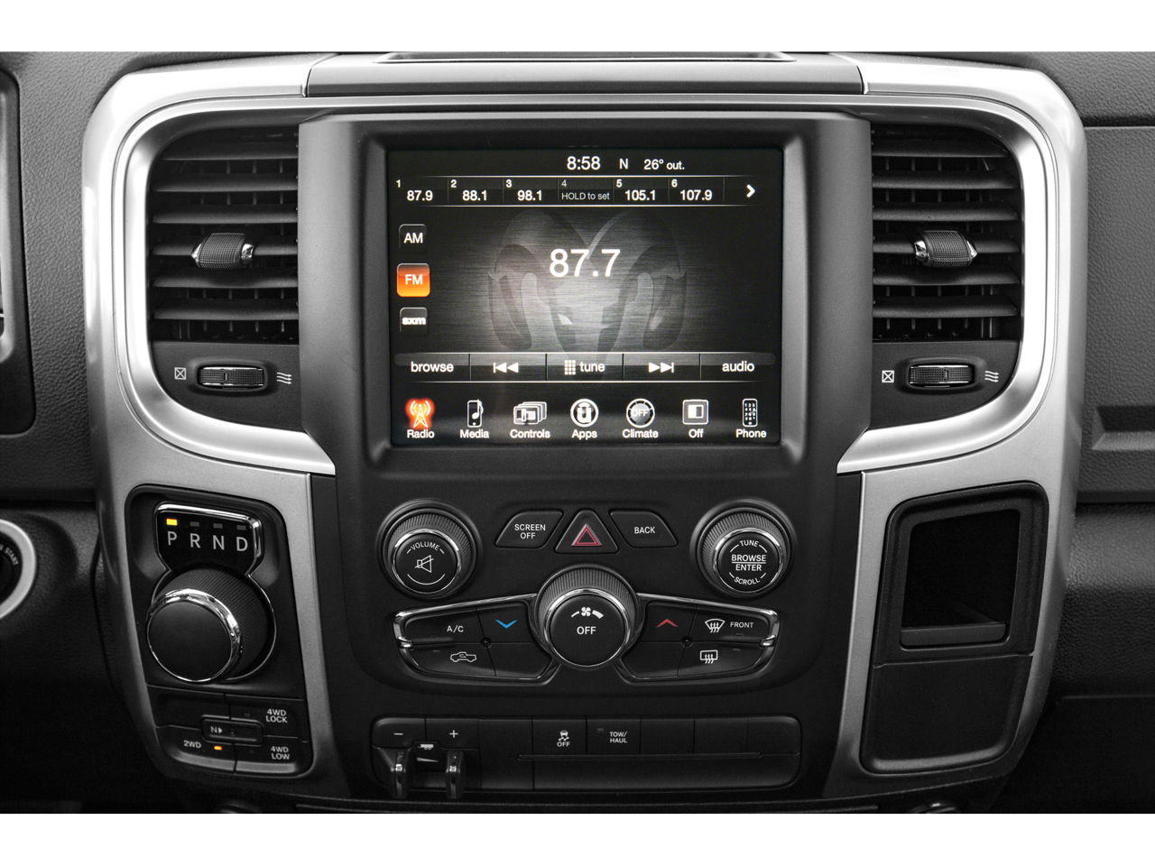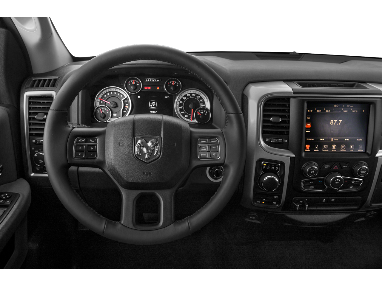 Quick Order Package 26Z Big Horn: Full Size Temporary Use Spare Tire; Leather Wrapped Steering Wheel; Fog Lamps; Steering Wheel Mounted Audio Controls; Bright/bright Billets Grille; P275/60R20 BSW AS Tires; Locking Lug Nuts; 6. 900 lbs GVWR; Big Horn Regional Package; Electric Shift on Demand Transfer Case; 20" X 8" Aluminum Chrome Clad Wheels; Big Horn Badge; Class IV Receiver Hitch. Comfort Group: Humidity Sensor; Heated Front Seats; Heated Steering Wheel; Air Conditioning ATC with Dual Zone Control. Luxury Group: Leather Wrapped Steering Wheel; Exterior Mirrors with Supplemental Signals; Rear Dome with On/off Switch Lamp; Underhood Lamp; Steering Wheel Mounted Audio Controls; Exterior Mirrors Courtesy Lamps; Glove Box Lamp; Ash Tray Lamp; Rear View Auto Dim Mirror with Microphone; Auto Dim Exterior Mirrors; Universal Garage Door Opener; Power Folding Mirrors; Power Heated Fold-Away Mirrors; Sun Visors with Illuminated Vanity Mirrors; Electroluminescent Instrument Cluster; Overhead Console with Garage Door Opener. Remote Start and Security Group: Remote Start System; Security Alarm. Protection Group: Tow Hooks; Transfer Case Skid Plate Shield; Front Suspension Skid Plate. Trailer Tow Mirrors and Brake Group: Trailer Brake Control; Power Black Trailer Tow Mirrors. Rear Camera and Park Assist Group: ParkView Rear Back-Up Camera; ParkSense Front/rear Park Assist System. Quick Order Package 22Z Big Horn: Full Size Temporary Use Spare Tire; Leather Wrapped Steering Wheel; Fog Lamps; Steering Wheel Mounted Audio Controls; Bright/bright Billets Grille; P275/60R20 BSW AS Tires; Locking Lug Nuts; Big Horn Regional Package; Electric Shift on Demand Transfer Case; 20" X 8" Aluminum Chrome Clad Wheels; Big Horn Badge; Class IV Receiver Hitch. Uconnect 8.4A AM/FM/SXM/BT Radio. ParkSense Front/rear Park Assist System. Anti-Spin Differential Rear Axle. Premium Cloth Bucket Seats. Trailer Brake Control. Chrome Bodyside Molding. ParkView Rear Back-Up Camera. Single Disc Remote CD Player. **Equipment listed is based on original vehicle build and subject to change. Please confirm the accuracy of the included equipment by calling the dealer prior to purchase.**