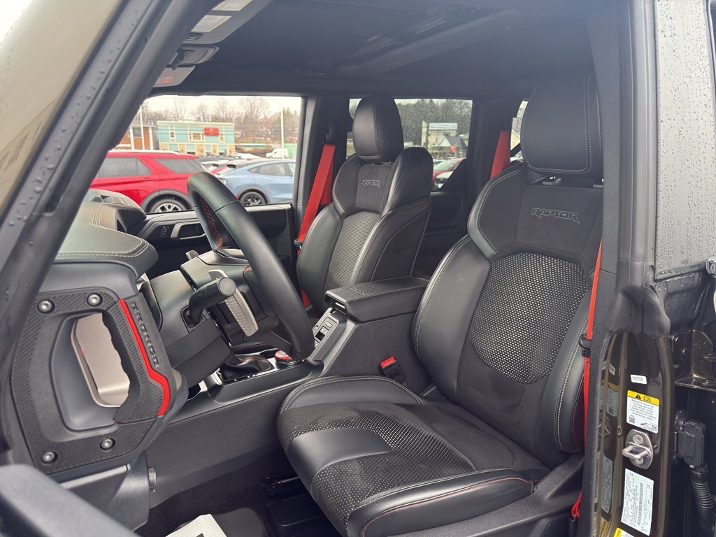 Raptor Code Orange Appearance Package: Code Orange Accent Seat Belts; Body-Color Painted Sideview Mirror Caps. Equipment Group 374A High/lux Package: 17" Black High Gloss-Painted Aluminum Wheels; Engine: 3.0L EcoBoost V6; 4.7 Axle Ratio; Marine Grade Vinyl Bucket Seats; 10-Speed Automatic Transmission; 37 X 12.5R17 All-Terrain Tires; 6. 100 lbs GVWR; B&O Sound System by Bang and Olufsen. Leather-Trimmed/vinyl Bucket Seats. Code Orange Accent Seat Belts. Off-Road Assistance Kit. Second Row Panel Roof Bag Storage. Wheel Lock Kit. **Equipment listed is based on original vehicle build and subject to change. Please confirm the accuracy of the included equipment by calling the dealer prior to purchase.**