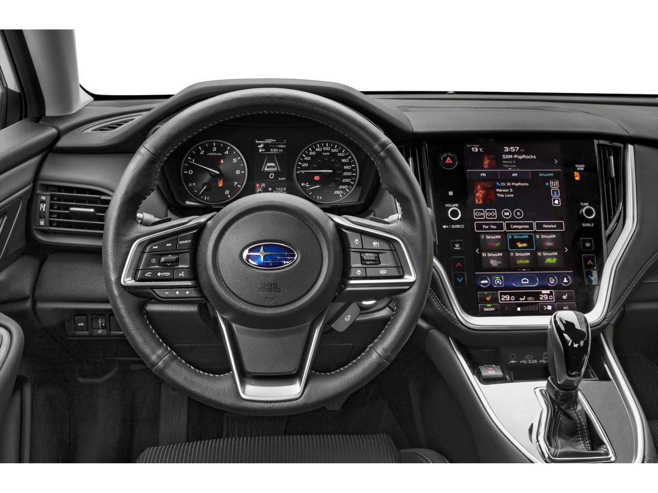 - Radio: Subaru 11.6" Multimedia Plus System -inc: AM/FM stereo, HD Radio, valet mode, multi-touch gesture high resolution display screen, voice activated controls, Bluetooth audio streaming and hands-free phone connectivity w/SMS text messaging (refer to subaru.com for cell phone compatibility), Near Field Communication (NFC), iPod control capability, SiriusXM w/360L (4 months free trial/subscription required after), SiriusXM Travel Link (3 years free trial/subscription required after), smartphone integration w/full screen view and wireless connection for Android Auto and Apple CarPlay, USB and Over The Air (OTA) audio system update, audio/Bluetooth steering wheel control switches, 6 speakers, 3.5mm illuminated front auxiliary input jack, illuminated front and rear USB-A and USB-C input/charge ports and roof mounted satellite and connected services